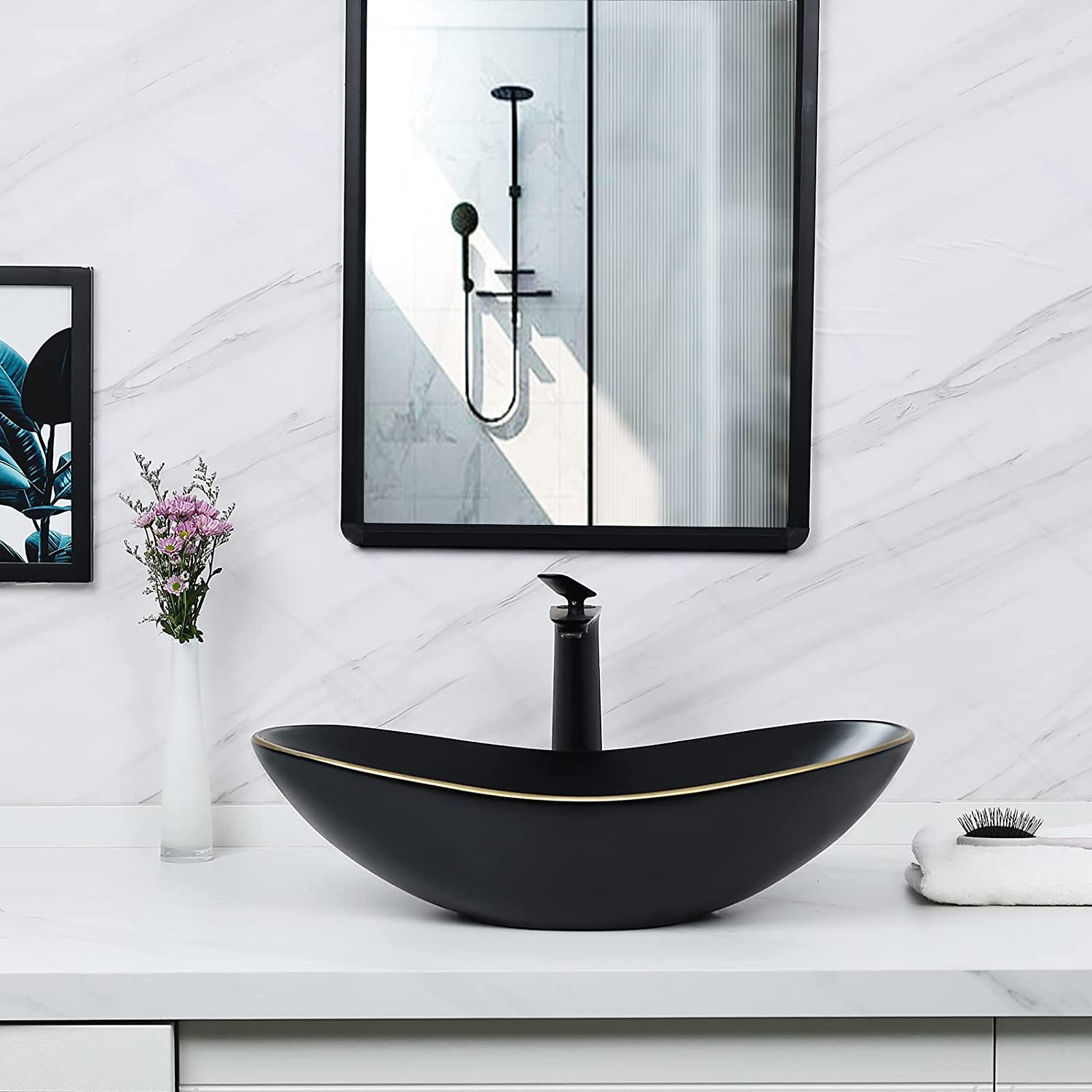 Davivy 24'' X 13.8'' Bathroom Ceramic Oval Vessel Sink with Pop Up Drain