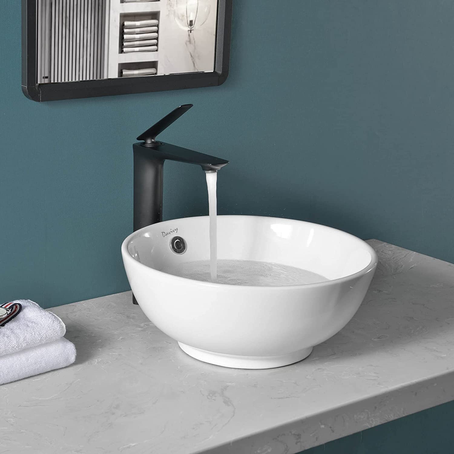 Davivy 16.5'' Round Ceramic Vessel Sink with Pop Up Drain for Bathroom